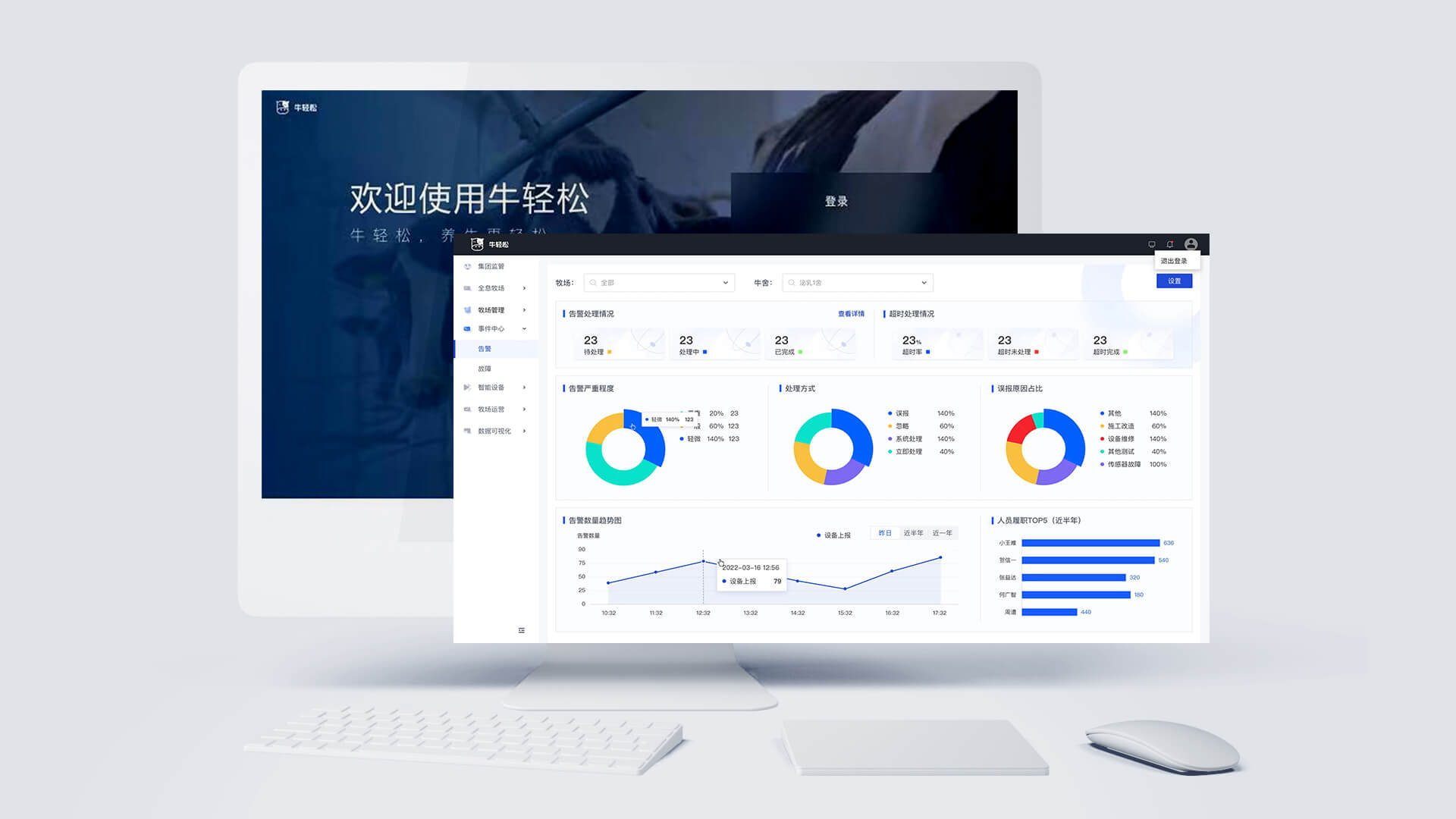 牛輕松對牧場的智能風機系統、噴淋系統、視頻監(jiān)控系統、智能照明系統、能源監(jiān)測系統、環(huán)境監(jiān)測系統、工單系統等進行統一的管理與聯動配置。產品的應用實現牧場內所有設備的一鍵全連、協同聯動及可視化管理,輔助牧場能夠綠色的、高效的、可持續(xù)盈利的長足發(fā)展。